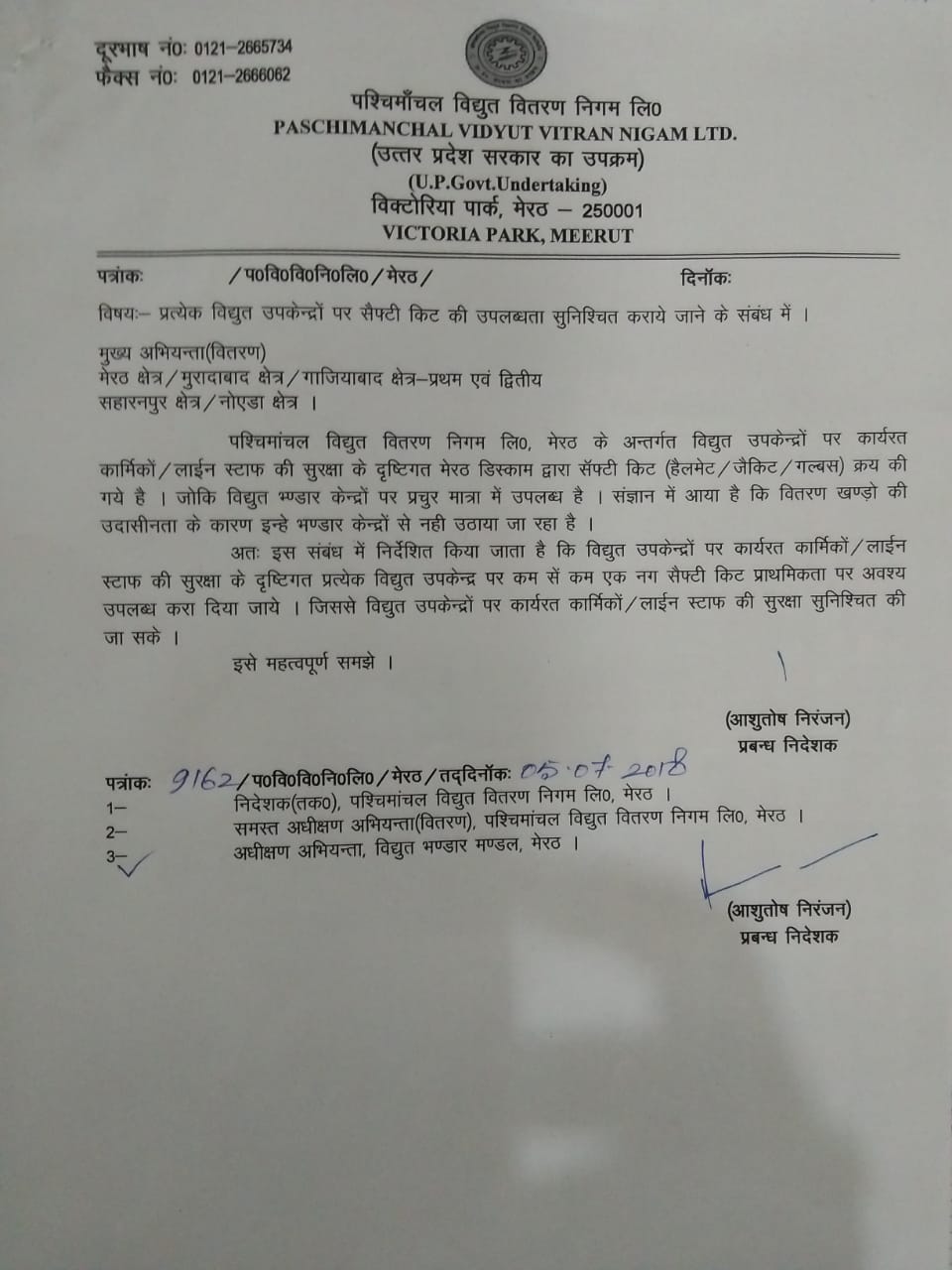 प्रबंधक निदेशक पश्चिमांचल के शटडाउन संबंधी आदेश